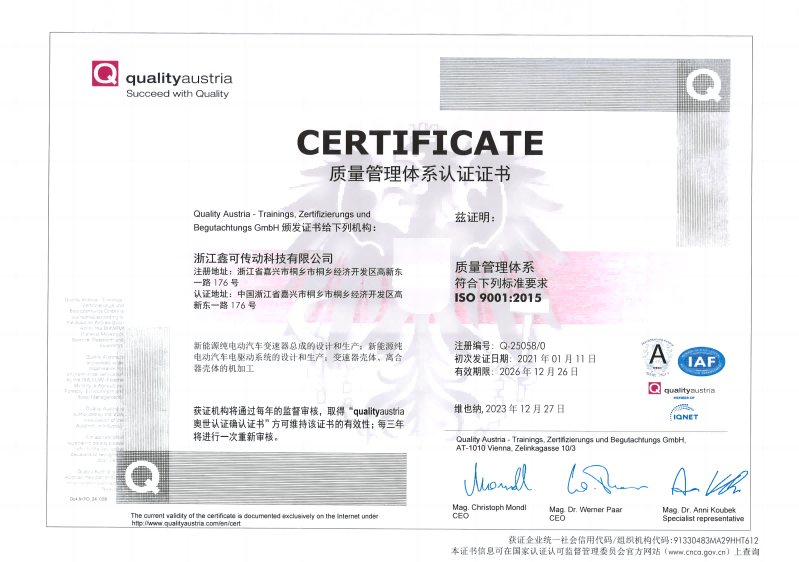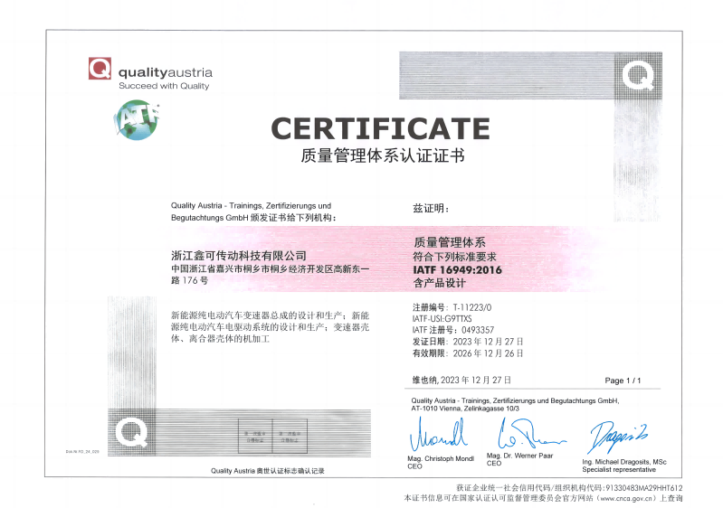 浙江鑫可傳動科技有限公司是鑫可總公司為滿足新能源汽車發展需要,在桐鄉市設立的全資子公司和易地新建項目。